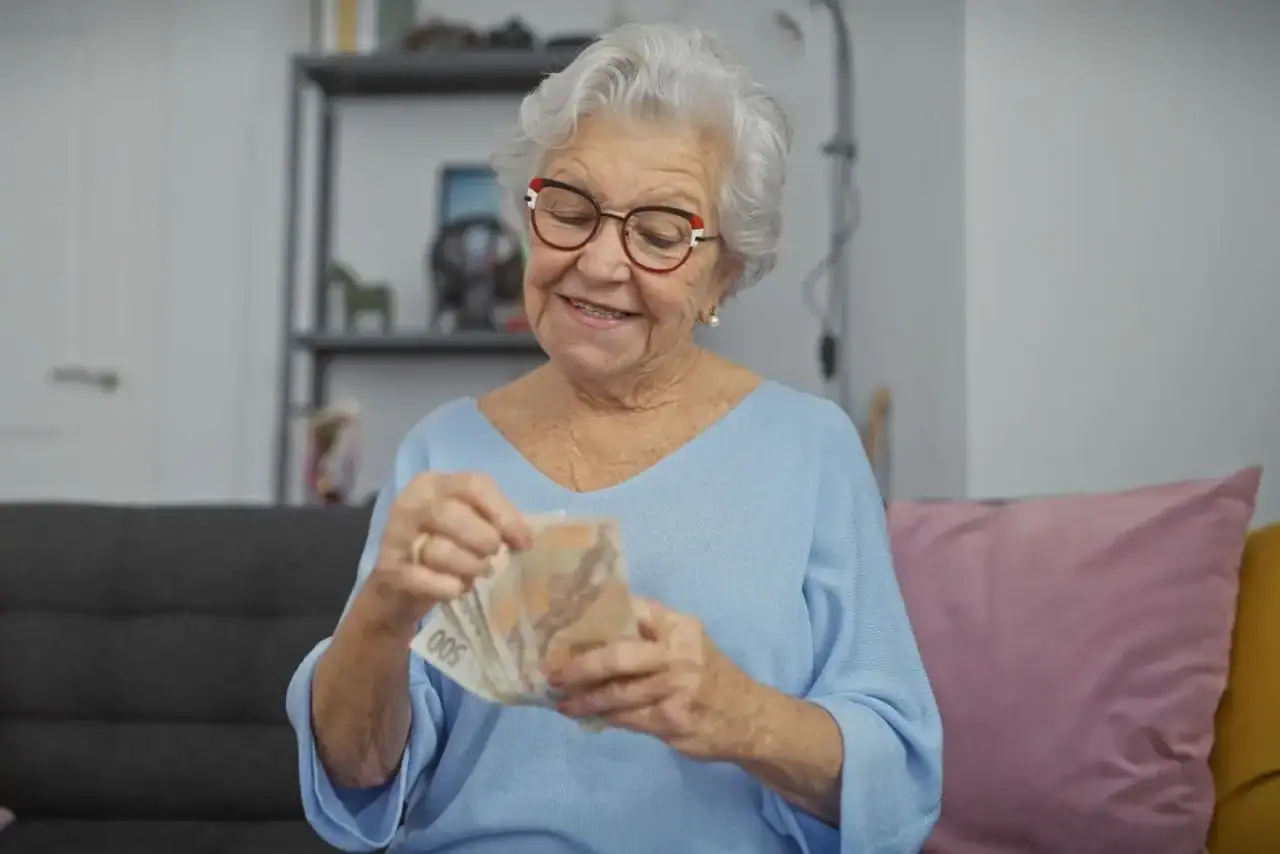 Důchodkyně počítá své peníze.